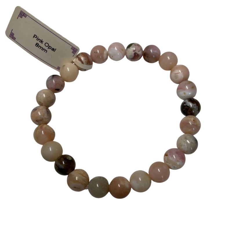 Découvrez le bracelet en opale rose naturelle 8 mm, une pierre douce et apaisante qui :