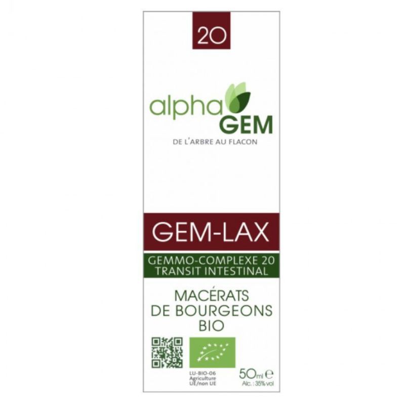 Le Gem-Lax Complexe n°20 Bio d’AlphaGEM est un complément alimentaire de gemmothérapie formulé pour :