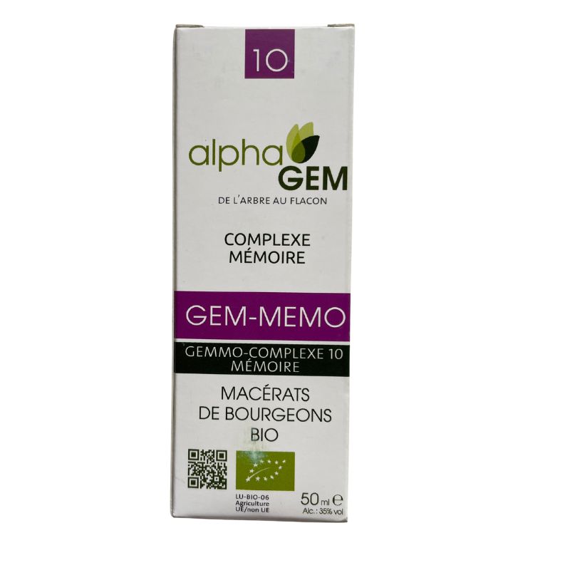 Le Gem-Mémo Complexe n°10 Bio d’AlphaGEM est un complément alimentaire de gemmothérapie formulé pour :