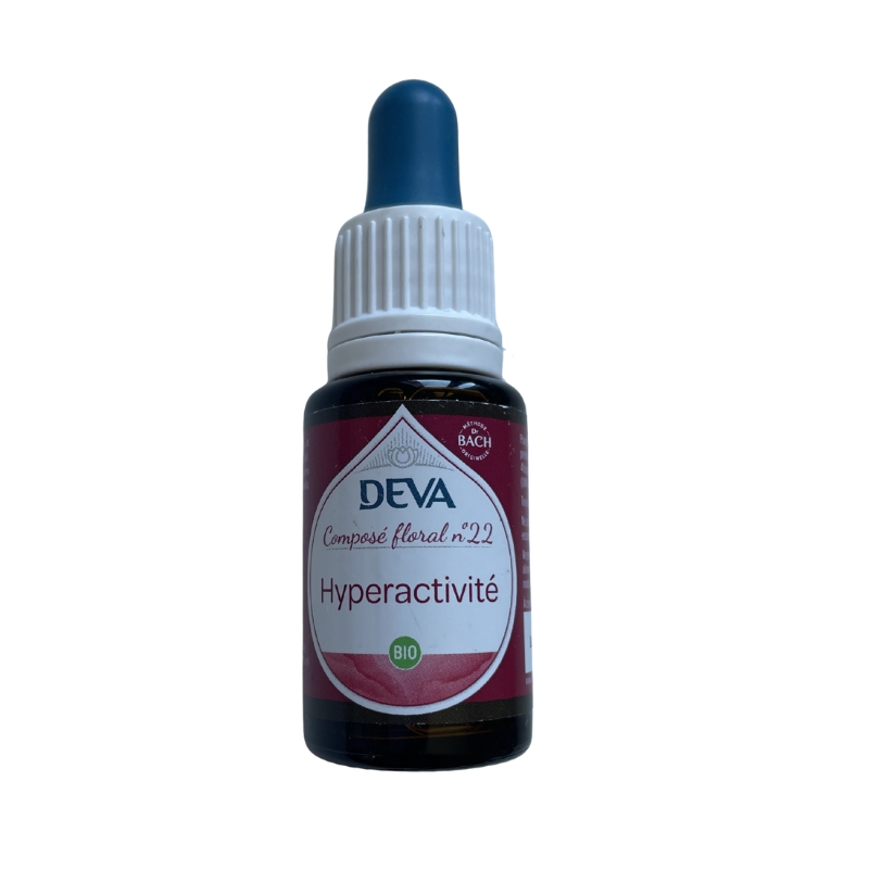 Composé floral DEVA Hyperactivité sans alcool : accompagne l’attention, apaise l’agitation et soutient l’équilibre émotionnel des enfants et adultes sensibles.
